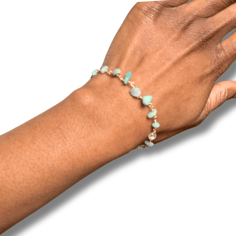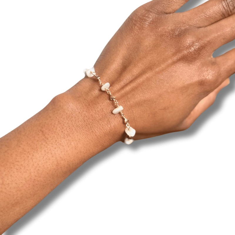 Orné de pierres naturelles aux couleurs chatoyantes et aux formes diverses, le Bracelet Elisa capture et reflète la lumière, attirant les regards admiratifs.